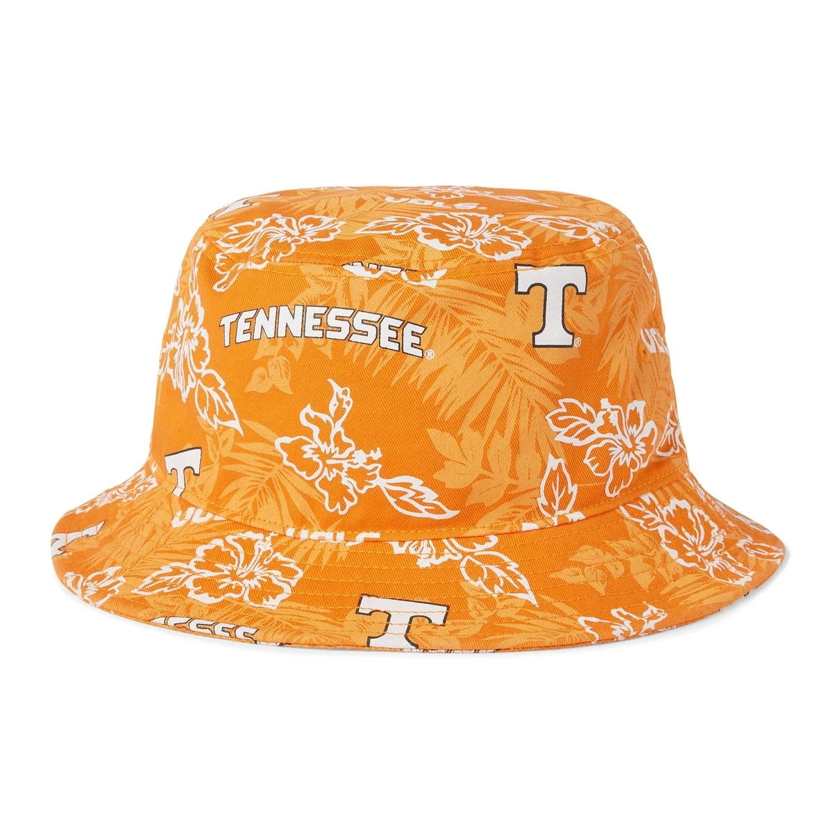 Classic fit unstructured bucket hat featuring the University of Tennessee print. This print combines University of Tennessee logos with classic aloha prints in a classic bucket shape with self-fabric under visor so you can rep the Vols with pride! Made with 100% Cotton with tonal sewn eyelets for breathability.